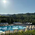 Las ventanas ofrecen vistas a la piscina. Agriturismo Nelle Marche Hostal dispone de un cuarto de baño con bidé, bañera y ducha.